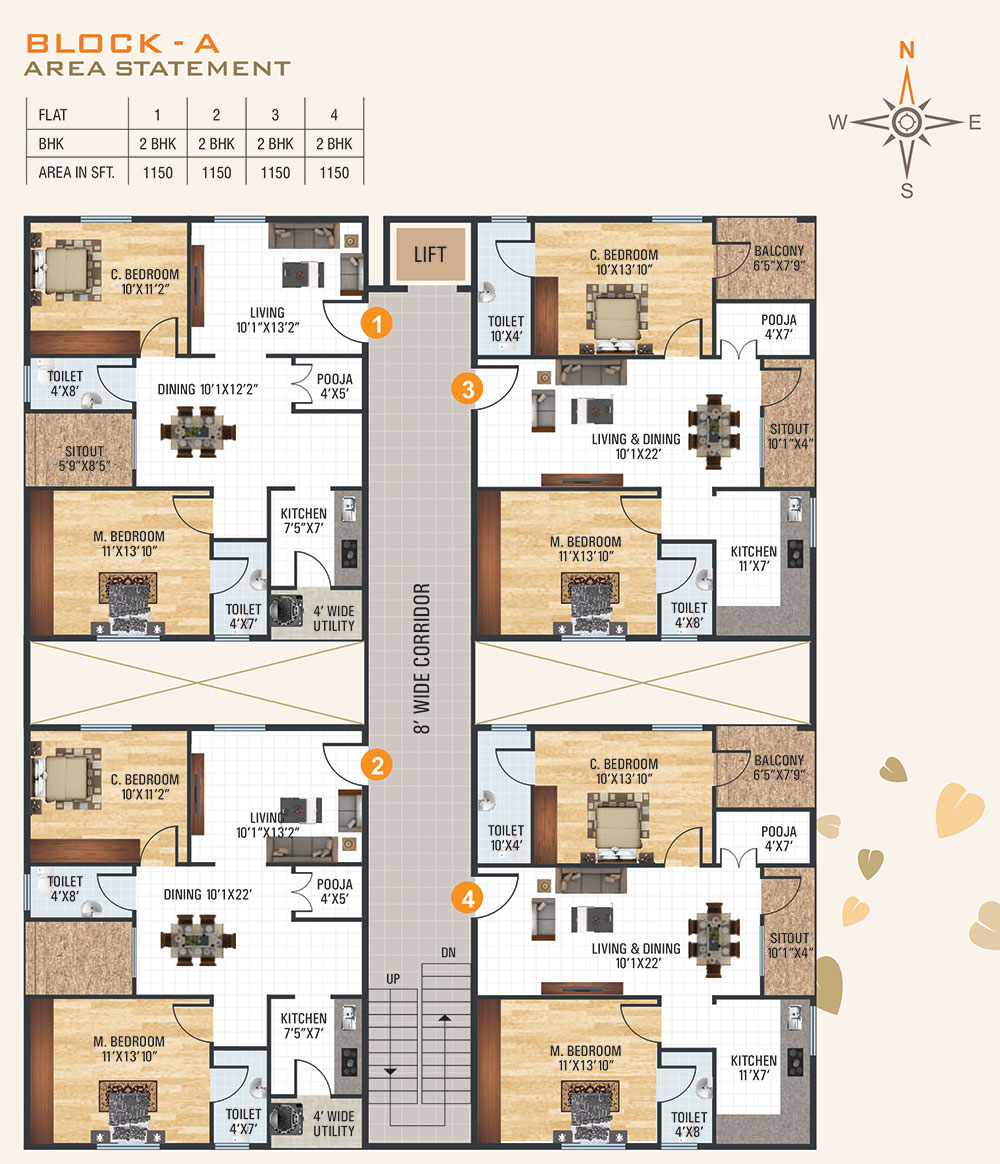 - Thoughtful planning assures privacy, Air ventilation & sunlight.